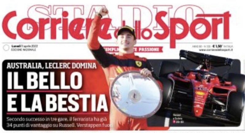 《都灵体育报》最棒的夏尔 勒克莱尔在墨尔本非凡的表现