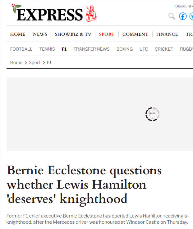 F1前老板伯尼认为,汉密尔顿为英国所做的贡献还不足被授予爵士头衔。
