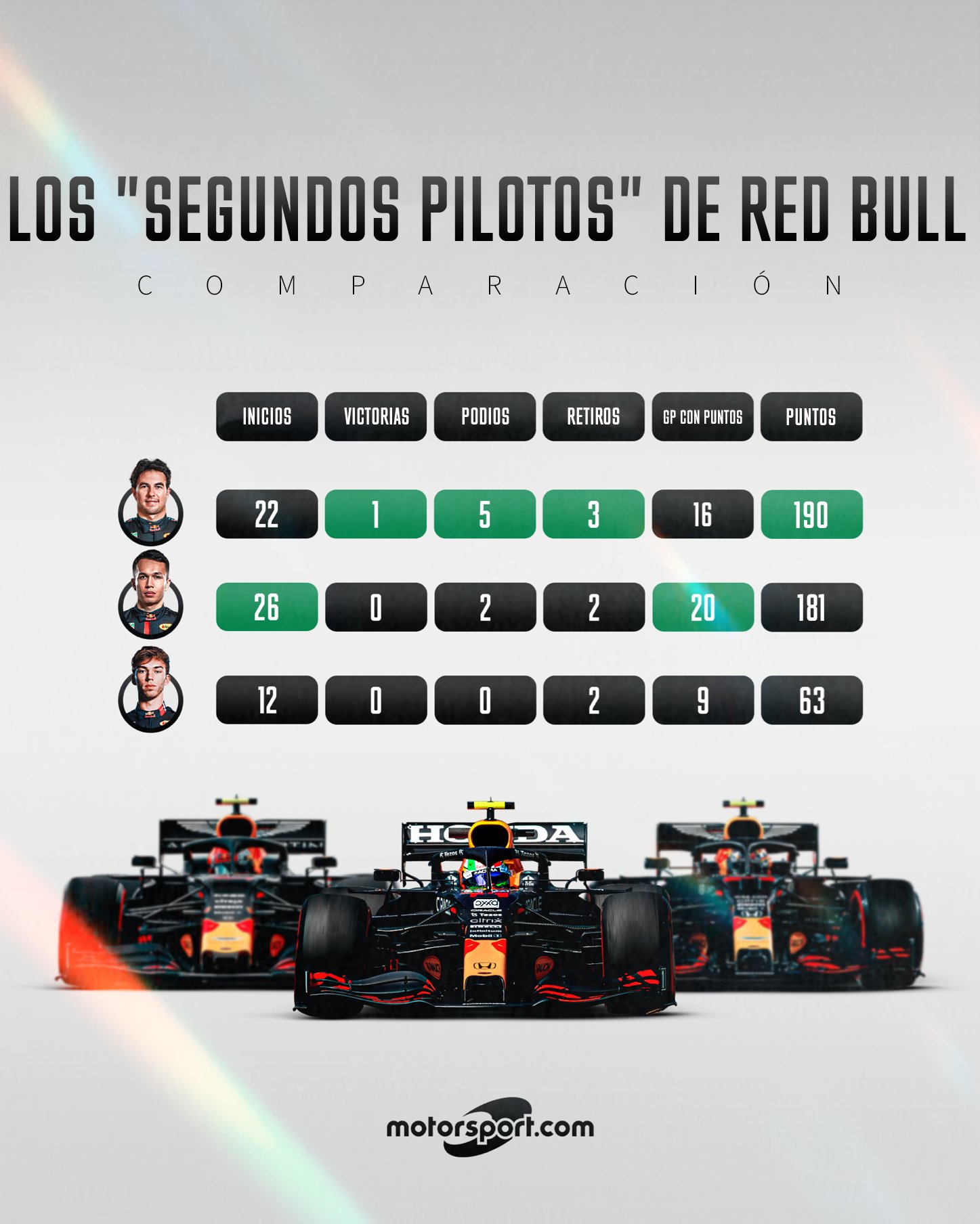 motorsport.com网站将维斯塔潘最近三位队友:加斯利、阿尔本和佩雷兹在红牛期间的成绩进行对比。佩雷兹在分站冠军数、领奖台个数和车手积分方面均领先。