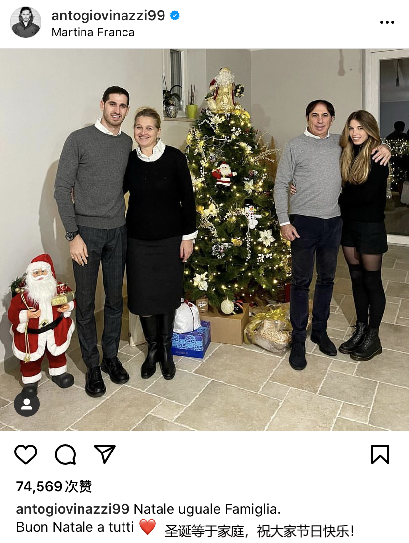 【Ins】吉奥维纳兹:圣诞节就是要和家人在一起!