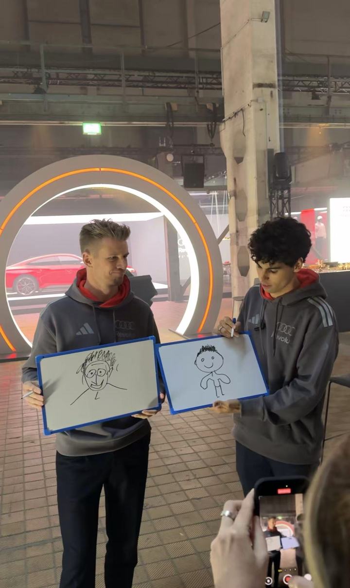 两位奥迪车手的绘画挑战,看看谁的画更传神?