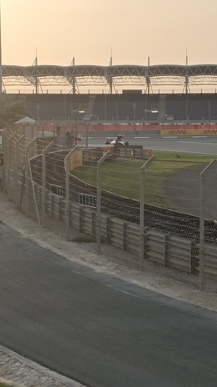 加斯利刚完成一个单圈,赛车突然慢了下来,他被迫停在了1号弯内侧的缓冲区里,引发红旗。