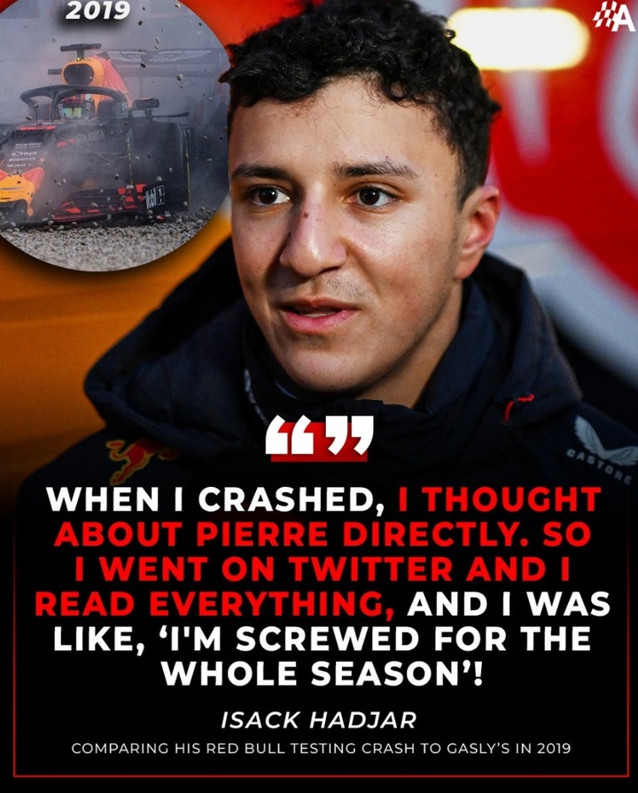 红牛二队车手哈贾尔在1月份的巴塞罗那封闭冬测中遭遇撞车,他坦言,那一次事故让他想到了自己的法国同胞加斯利。