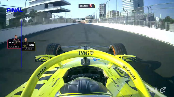 丹尼斯最后时隔将自己跟莫塔拉的差距从0.221秒追至0.037秒,可惜最终遗憾落败。不过他也帮助安德雷蒂车队拿到了前排发车的另一个位置。