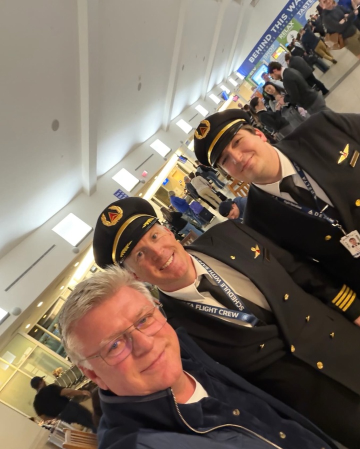 萨夫瑙尔与两位飞行员合影并写道:“非常感谢这两位专业人士,他们在我们起飞遭遇引擎故障时处理得非常出色。”
