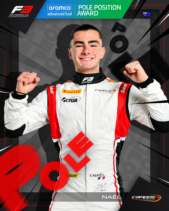 使用1号赛车参赛Campos车队车手泰奥菲勒·奈尔做出1分34秒187的成绩,拿到本赛季FIA F3赛事的首个杆位。