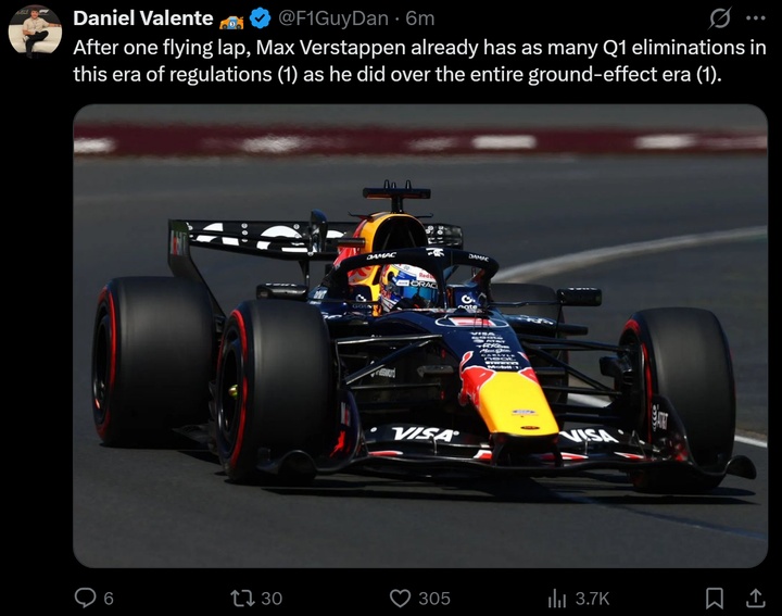 维斯塔潘新规首站即Q1出局,地效时期加起来只有1次Q1出局