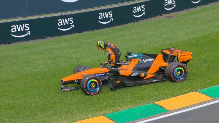 天哪!皮亚斯特里在巡场圈于4号弯失控撞墙!