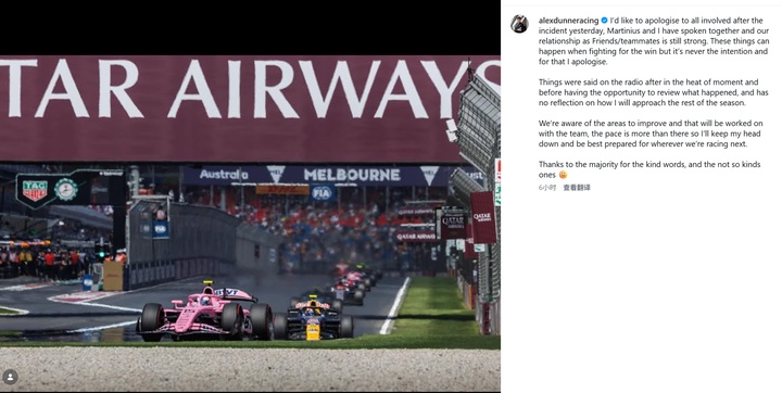 “我的一些言论是在情绪激动之时发表的,而且那是在我还没有对事故进行复盘之后的情况下所表达出来的。这起事件并不会影响我接下来整个赛季的应对策略。”
