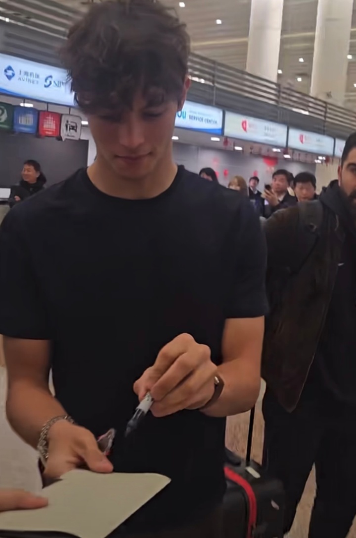 哈斯车手贝尔曼于3月11日早上抵达上海浦东机场,尽管夜航飞行略显疲惫,但仍在迎接大厅积极为车迷们签名。