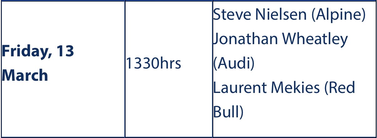 尼尔森(Alpine)、惠特利(奥迪)、梅基斯(红牛)