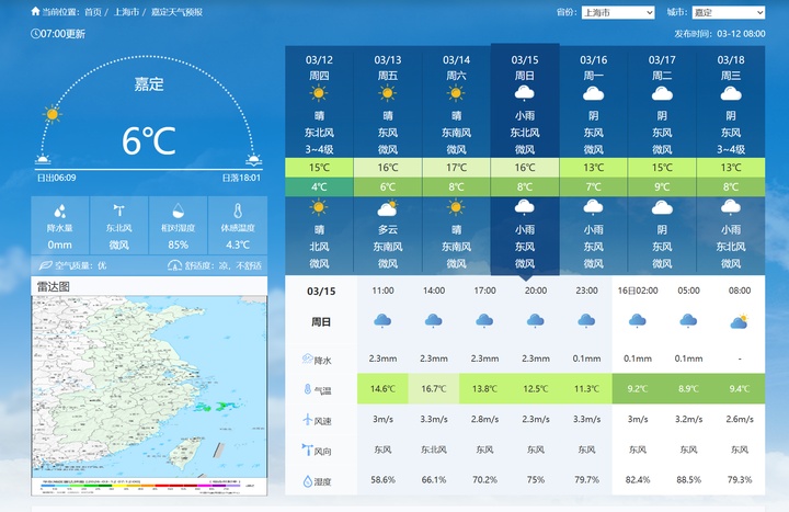 可能下雨!中央气象台预报显示上海嘉定区周日有小雨