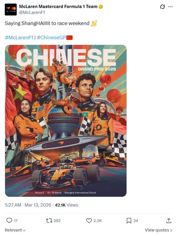迈凯伦:向比赛周说一声,上海(Hi)