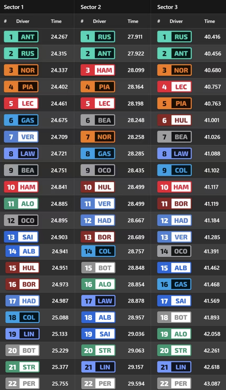 一练分段计时榜:梅赛德斯第三段优势最明显