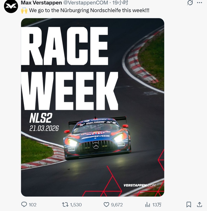 按照计划,维斯塔潘跟他的车队本周末将前往纽博格林赛道参与NLS系列赛第2回合的赛事。此前赛事方面已经将该回合的比赛调整时间至本周进行,让维斯塔潘得以有时间亲自来到赛道参赛。