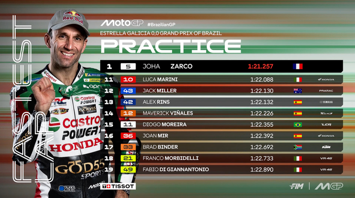 MotoGP时隔22年重返巴西,所有车手在北京时间今天凌晨于戈亚尼亚-埃尔顿·塞纳赛道进行了周五赛事的争夺。