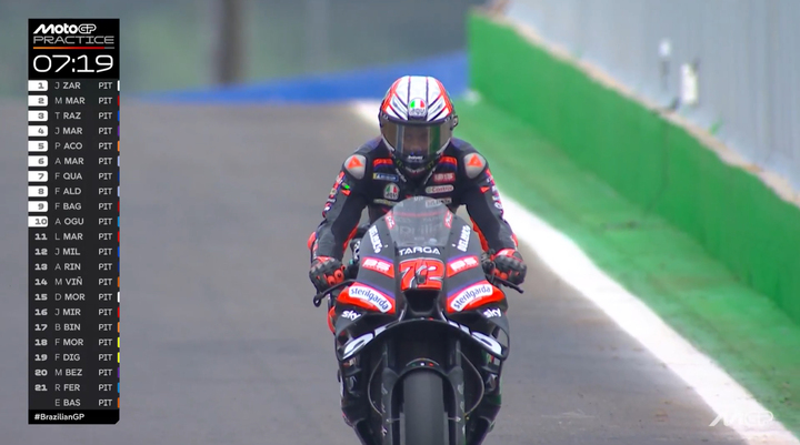 揭幕战正赛的冠军得主贝塞奇仅仅位列第20位,他没能在降雨到来之前刷出理想的成绩。为此贝塞奇需要在明天的Q1当中跟马里尼、米尔、莫比戴利、迪詹南托尼奥以及劳尔·费尔南德斯等车手争夺仅有的两个晋级Q2的席位。