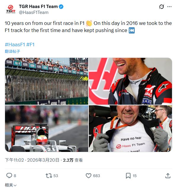 哈斯:距离我们首次参加F1比赛已经过去10年了👏