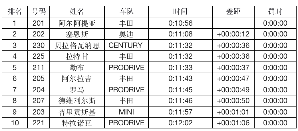 在比赛中,阿尔阿提亚以10分56秒的成绩完成19公里的特殊赛段,力压三届达喀尔冠军得主卡洛斯·塞恩斯,后者以12秒之差排在第二。但值得注意的是,西班牙老将驾驶的是本届最新的奥迪电动车,他的队友,14次取得达喀尔冠军的彼得汉塞尔仅以14名完赛,另一队友艾克斯托姆仅排名15。