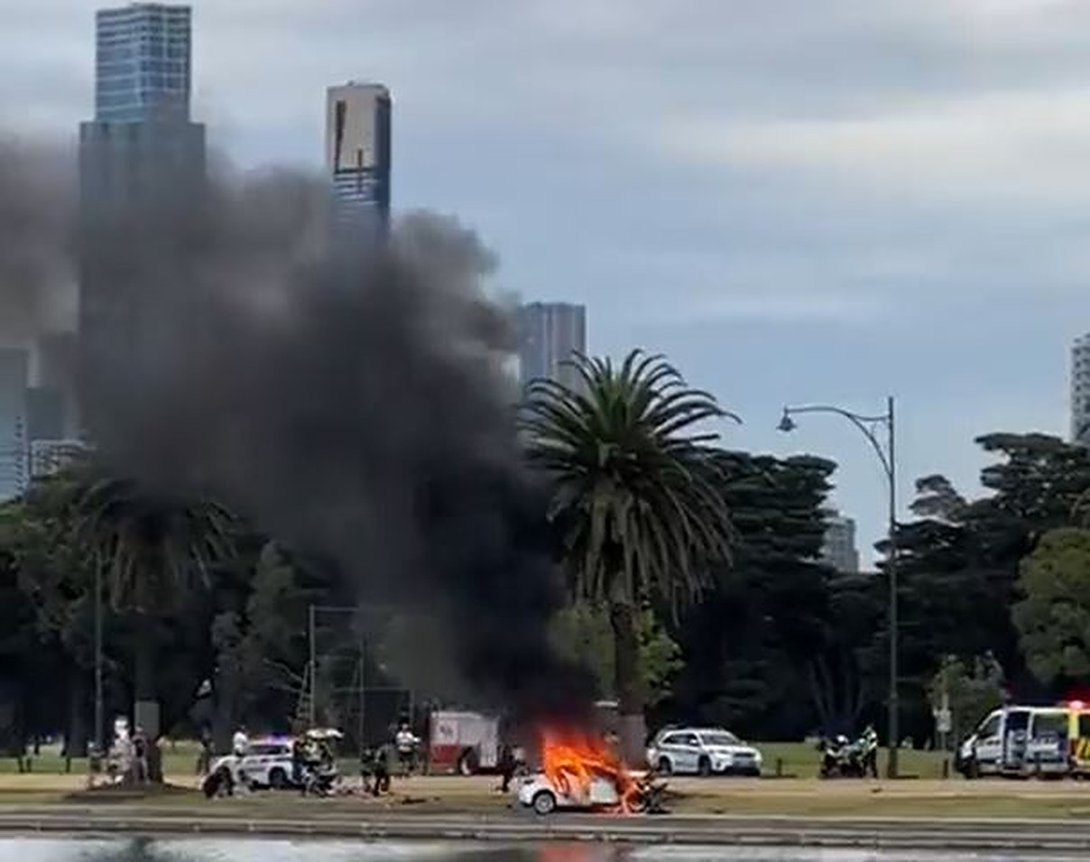 今天早些时候,一辆汽车在F1澳大利亚站的公园赛道上发生事故,随即车辆起火。这起事故导致三人受伤。