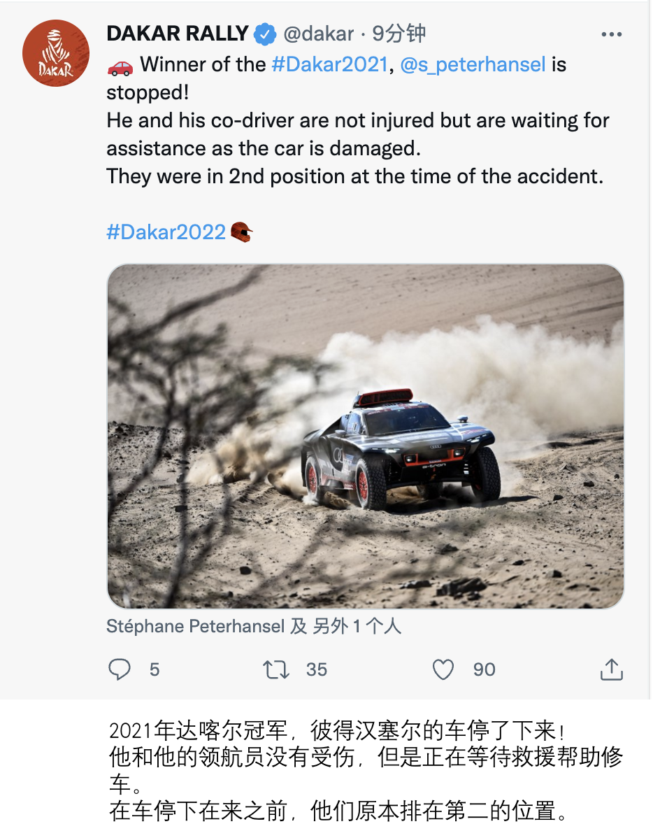 【突发】14届达喀尔冠军彼得汉塞尔遭遇事故停车!