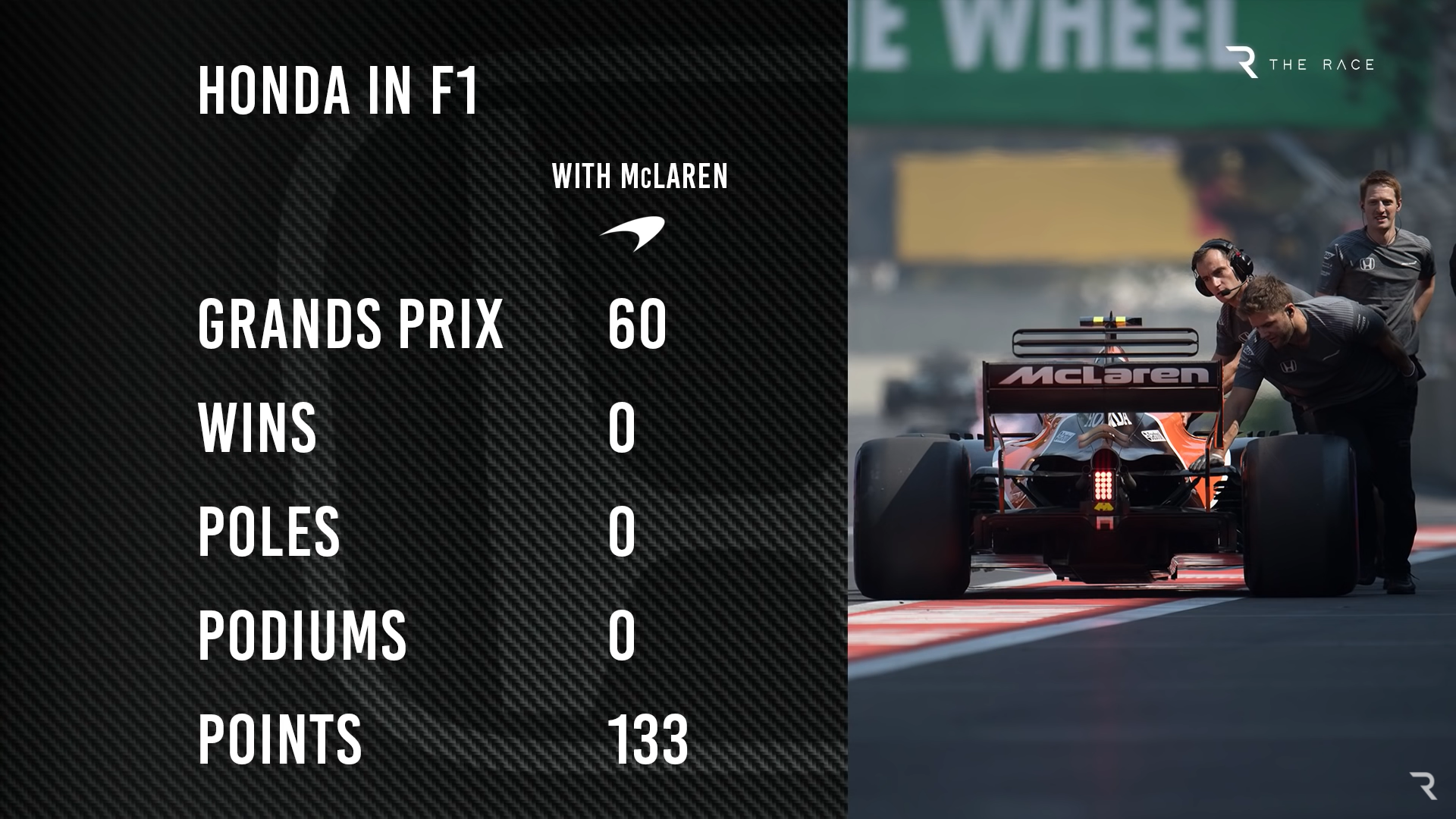 2017赛季是迈凯伦与本田合作的最后一年,他们以60场比赛133分黯然收场,没有杆位、没有胜利,更没有一次领奖台完赛。