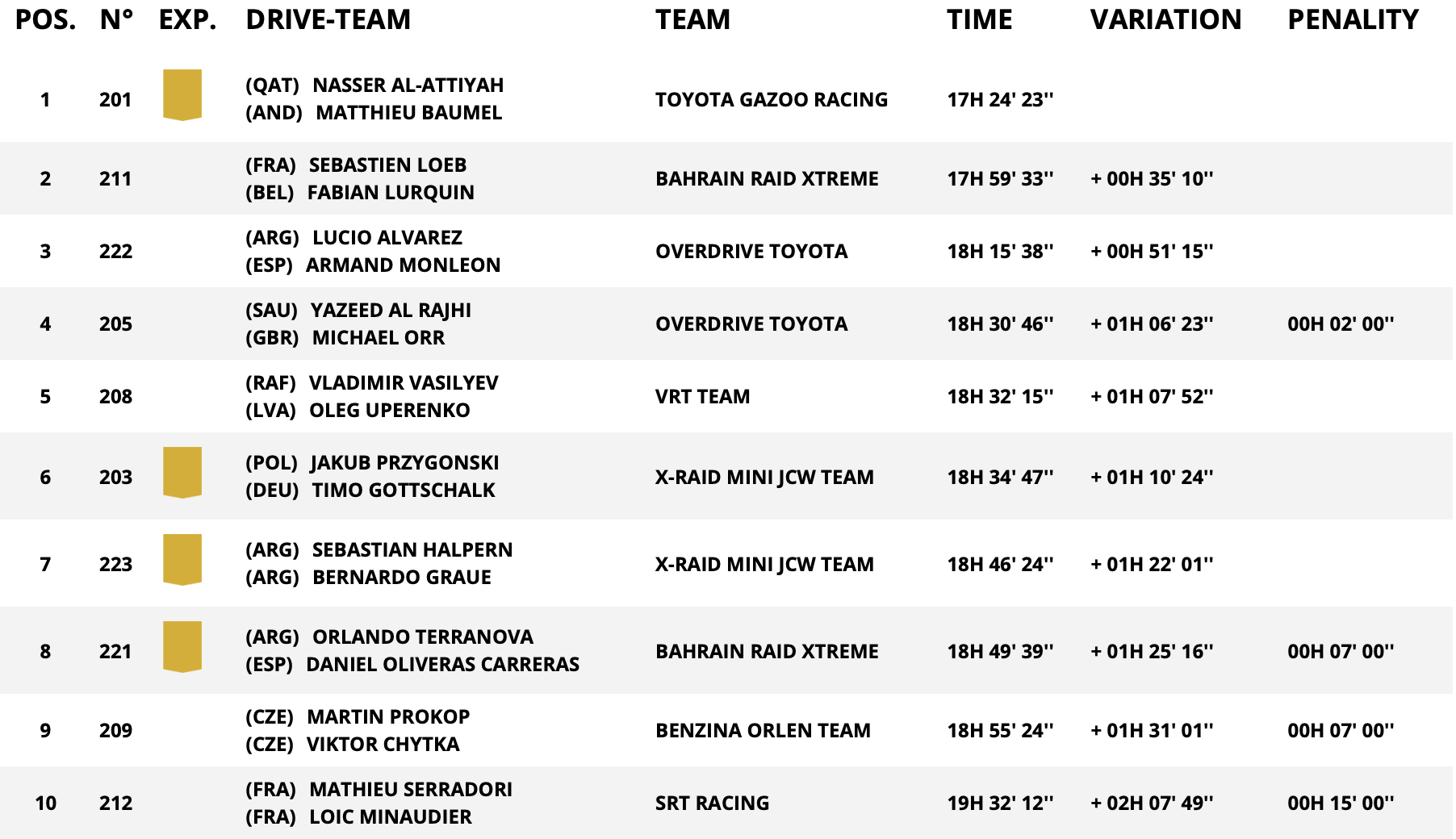 总排行榜上,阿尔阿提亚领先第二名勒布35分10秒,阿尔瓦雷斯排名第三。
