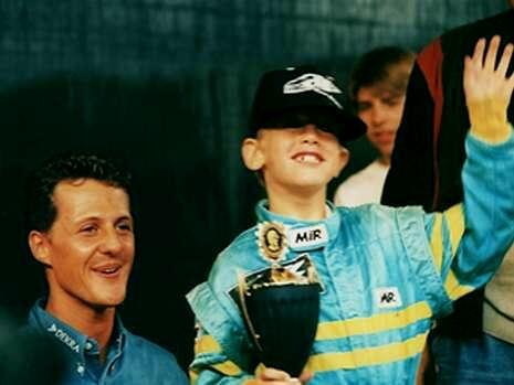 迈克尔·舒马赫在给这位小车迷颁奖时,也看出了这个孩子的赛车天赋。
