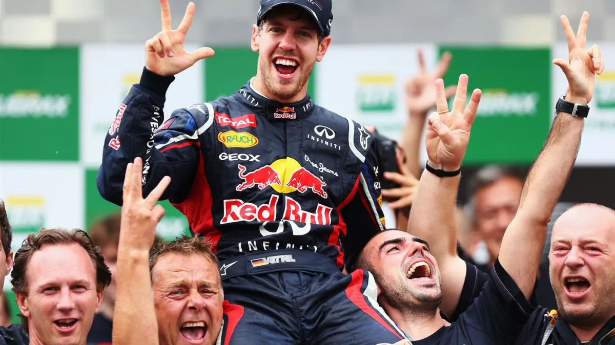 看着反光镜里的学生,舒马赫虽然没有功夫算积分,但他知道,能往前走一个位置,就能让维特尔离世界冠军更近一步。于是,在自己职业生涯最后一场比赛上,舒马赫放慢速度,让维特尔超过。最终红牛车手以领先三分的优势,如愿拿到自己第三个世界冠军。