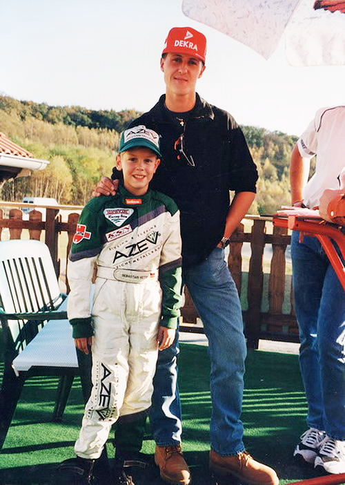 维特尔第一次见到舒马赫时只有七岁,对于一个小卡丁车手来说,能见到自己卧室海报上的偶像无疑带给他巨大鼓舞。