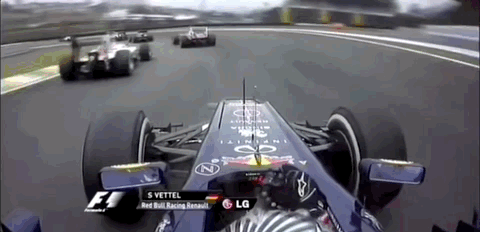 然而,老天不想让这个25岁的德国车手赢得太容易,维特尔在比赛第一圈就发生碰撞,掉到了队尾。赛车后侧也严重受损,两根尾管直接暴露在镜头前。而他的争冠对手阿隆索凭借出色的起步,从第七上升至第三。