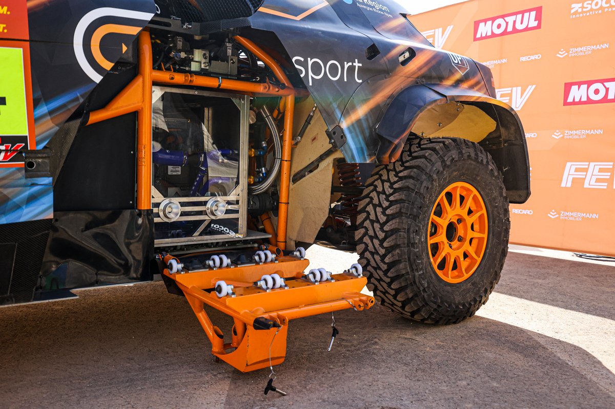 这款车目前的重量约为2200kg(与今年达喀尔首次亮相的奥迪RS Q e-tron一样),但GCK车队经理Lesonneur表示,它的一个关键优势是,它不会像普通赛车那样性能与油量的变化有关,因此从开始到结束都能提供稳定的动力。
