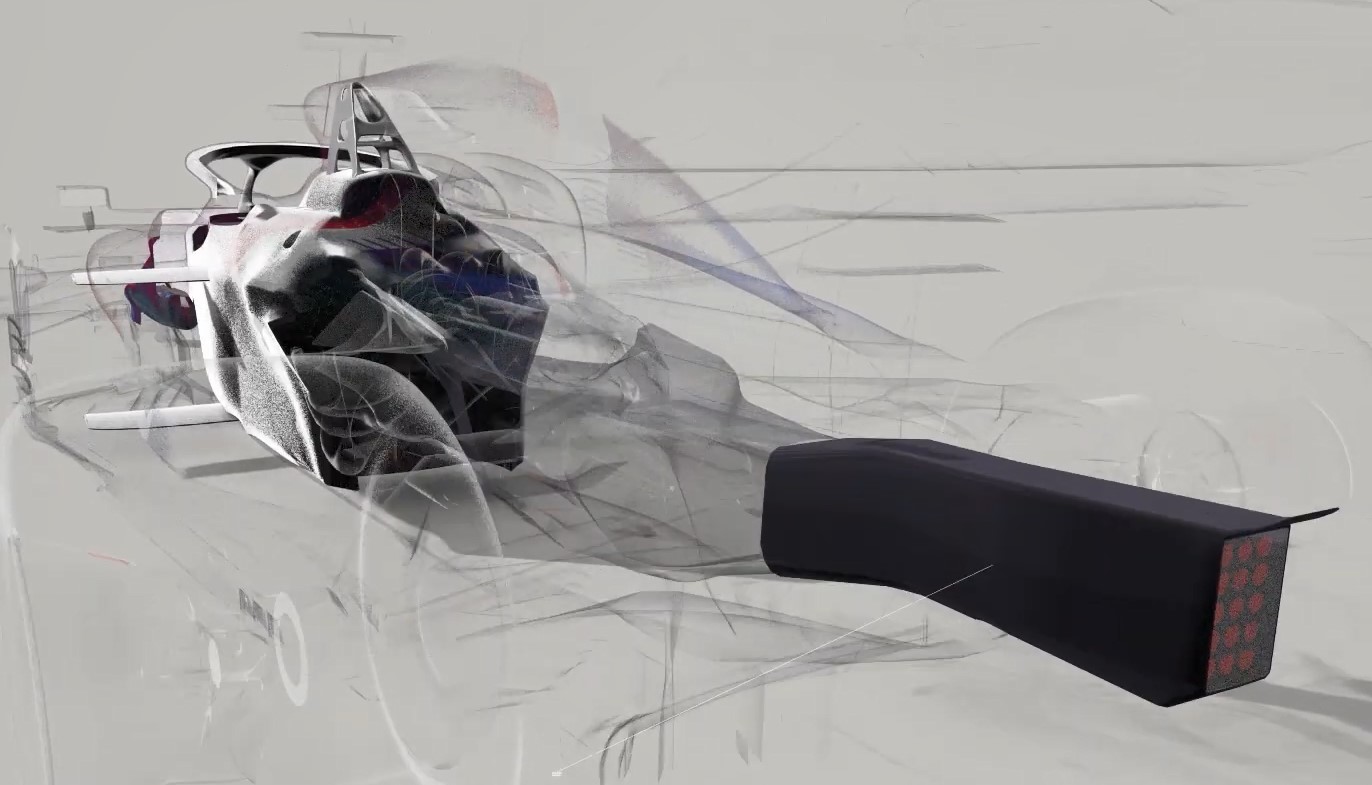 相信很多人都理解,大概是个飞机机翼倒过来的原理,然后上部有一个可翻转的DRS尾翼部分,直线进入DRS区可以翻转到比较平直的角度,减低行进阻力;翻转回来后,增加下压力。