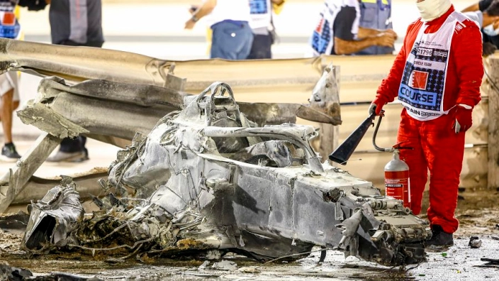 2020 巴林站 格罗斯让碰撞穿越护墙后的车身