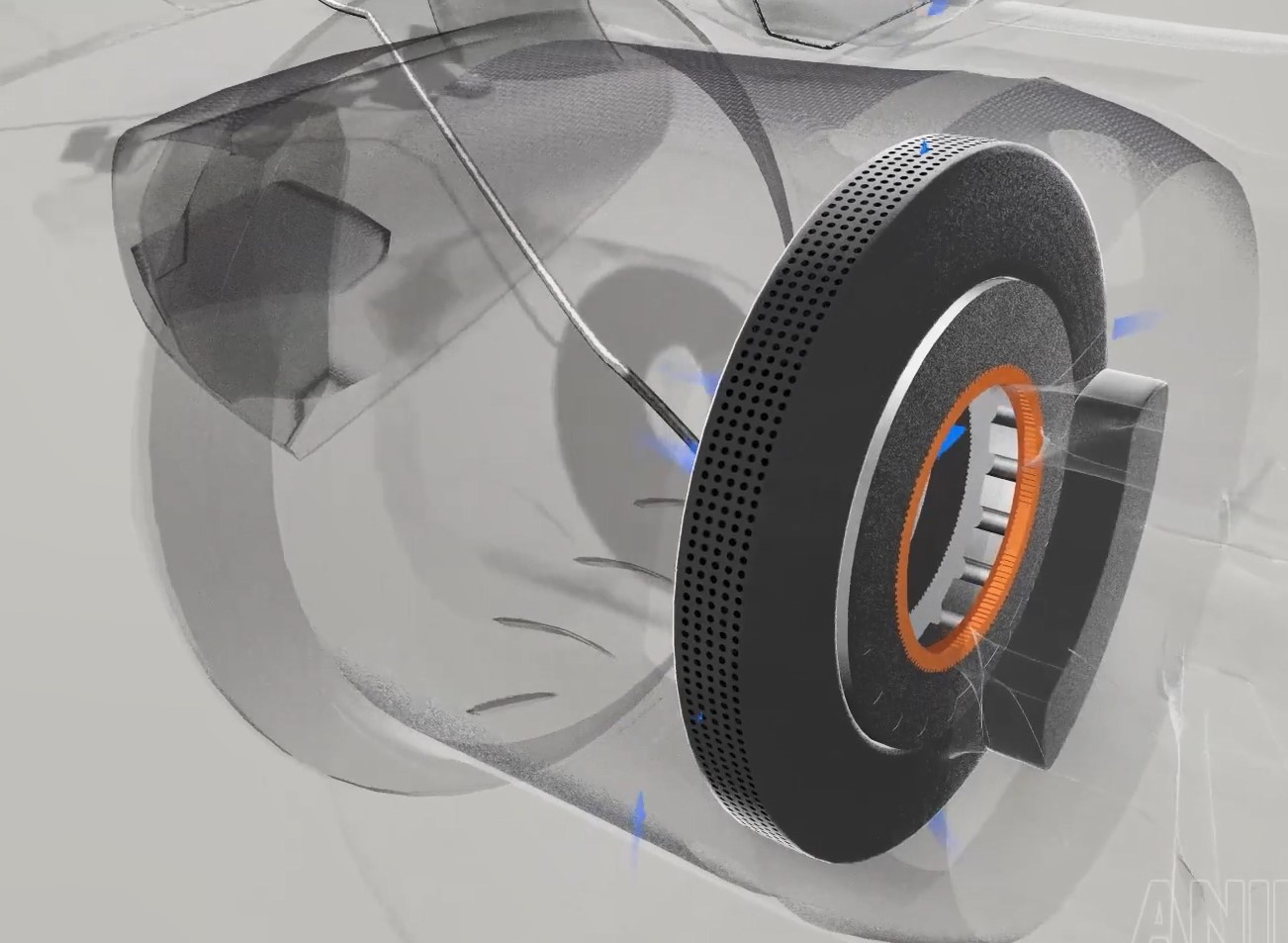 刹车盘则被包裹在一个刹车罩内,有向前的进气口进风散热,同时热量进出经过严格计算,保证每一圈刹车盘都在合适的温度区间。