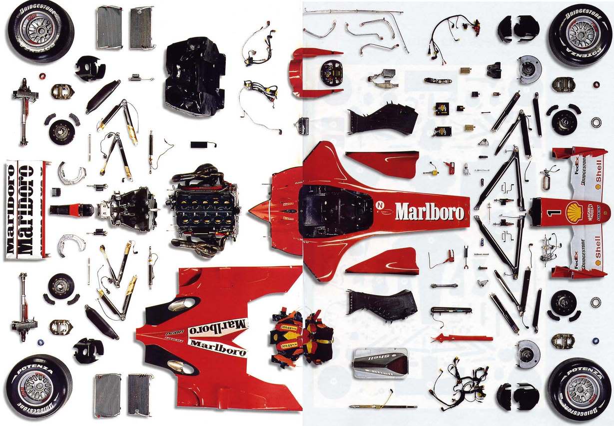 如果把一辆F1车零件全部拆开大约就是上图的样子。
