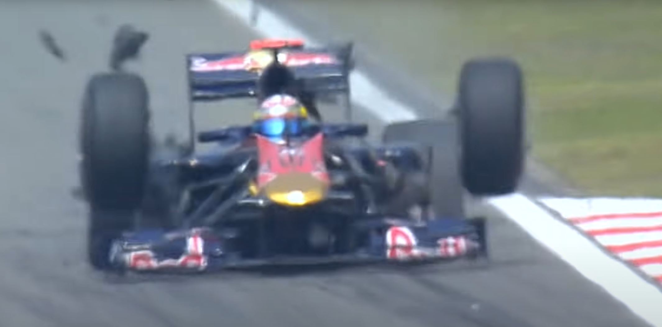 轮胎为了安全规定还会被钢索拉住,避免因为控制臂断裂造成的轮胎飞出的事故,比如2010年布埃米经历的双轮齐飞。