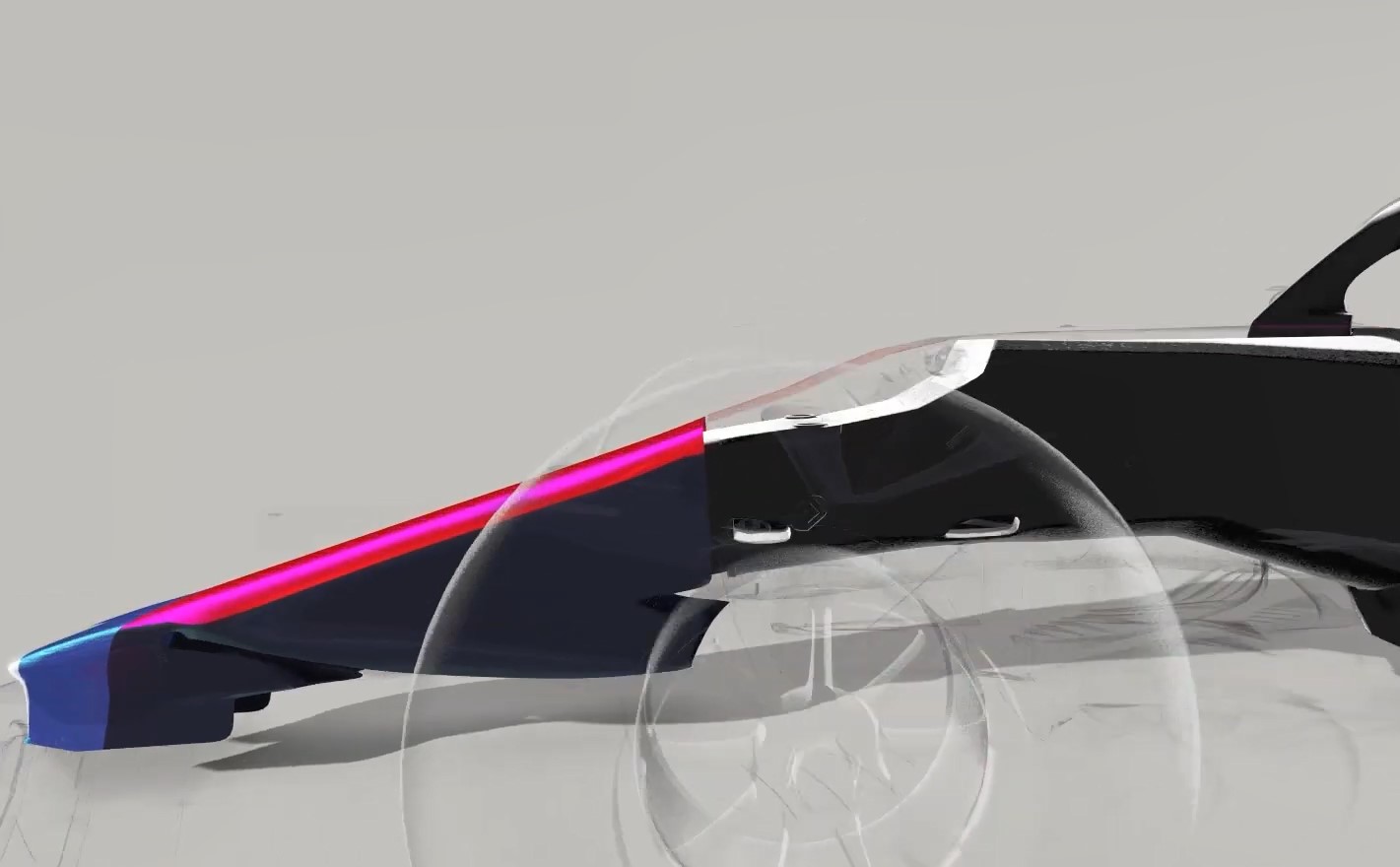 作为最前碰撞空气的部分,前翼决定了流向全部车身的气流布局。