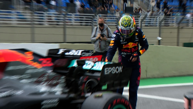 接下来我们看下维斯塔潘碰一下罚三十万的尾翼。这是后部气动下压力的主要来源。