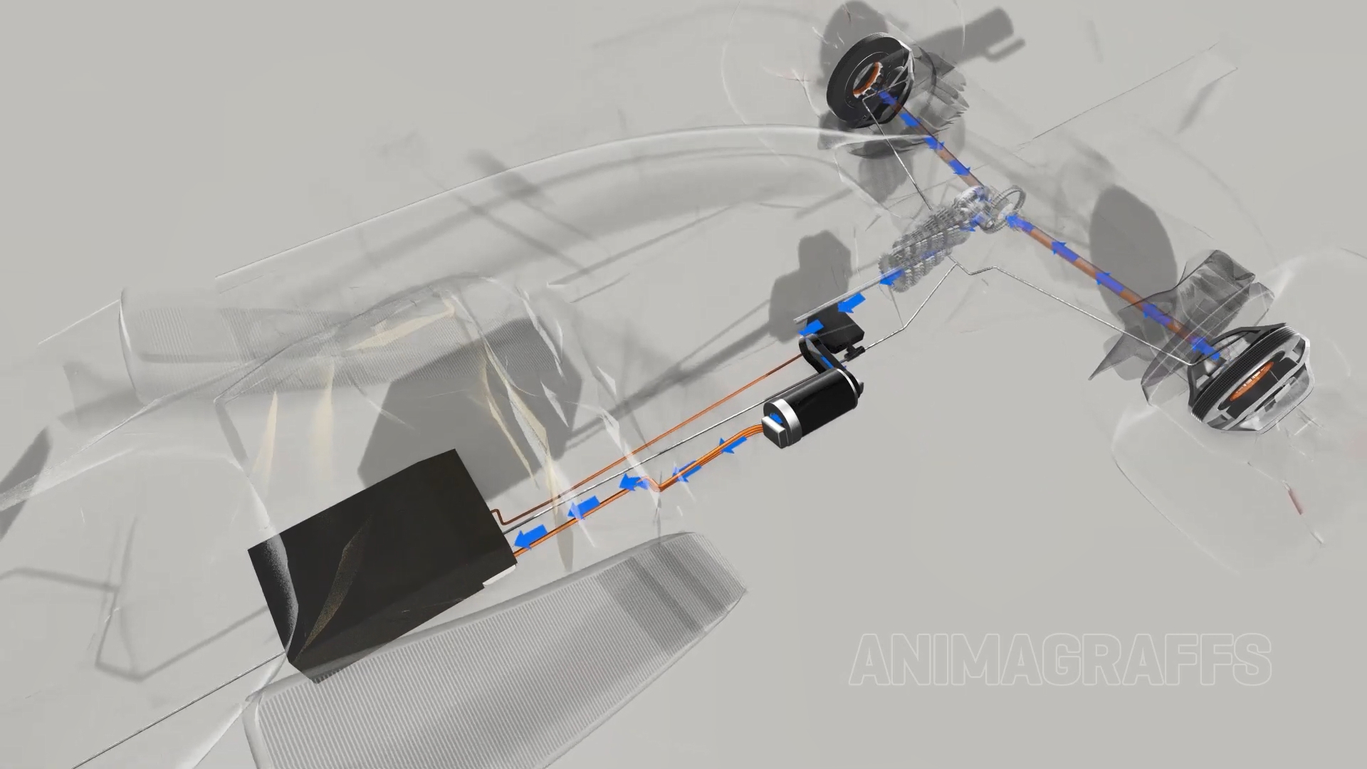 它们都在车身的后部,MGU-K负责在车辆制动或者小油门开度的时候给位于油箱下部的电池进行充电,在直线需要时会给车辆提供额外160马力的动力,它驱动变速箱进一步驱动后轮。