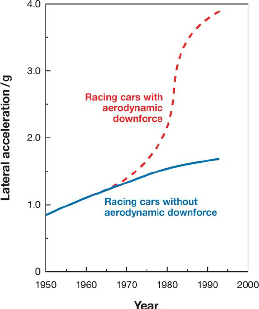 这源自于汽车工程对空气动力学认知的巨大提升,人们懂得了利用行进中的气流制造下压力,对比没有气动装置的车,侧向G值可以从1.3的热熔胎直接抓地力提高到现在甚至6G的瞬时侧向G值。