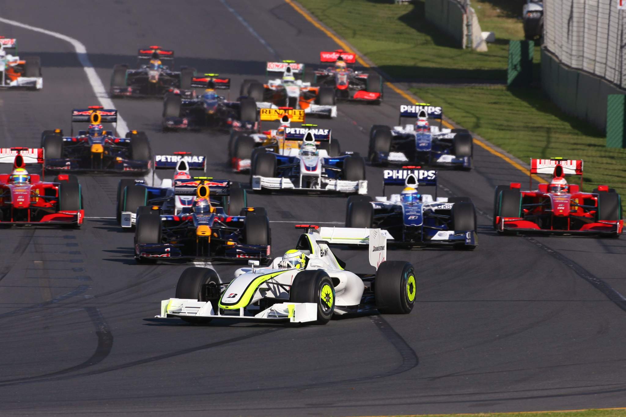 除了引入阶梯式底板和一些修改来整理小细节之外,这些规定或多或少一直伴随着我们,直到2009年有人偶然发现了所谓的“双层扩散器”。双层扩散器带来了巨大优势,因为在赛季开始时,只有三支车队使用,其中之一的布朗车队轻松赢得了冠军。其他人紧随其后,但由于设计时间短,导致性能依然存在差距,最终无法影响冠军归属。
