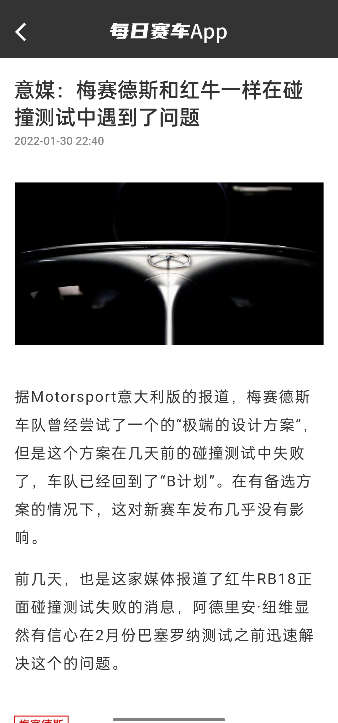此前,Motorsport意大利版报道梅赛德斯新车的侧面碰撞测试没能通过。