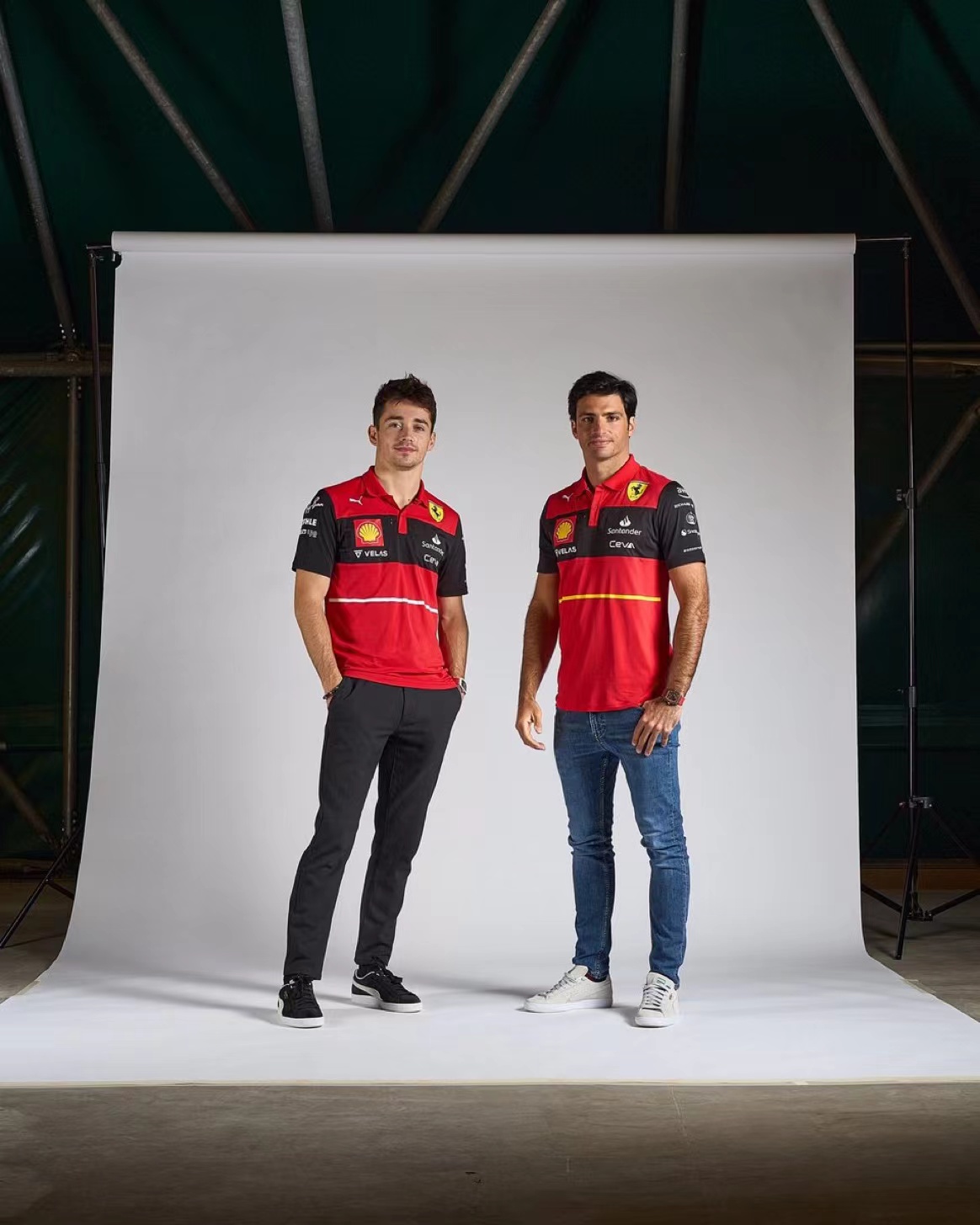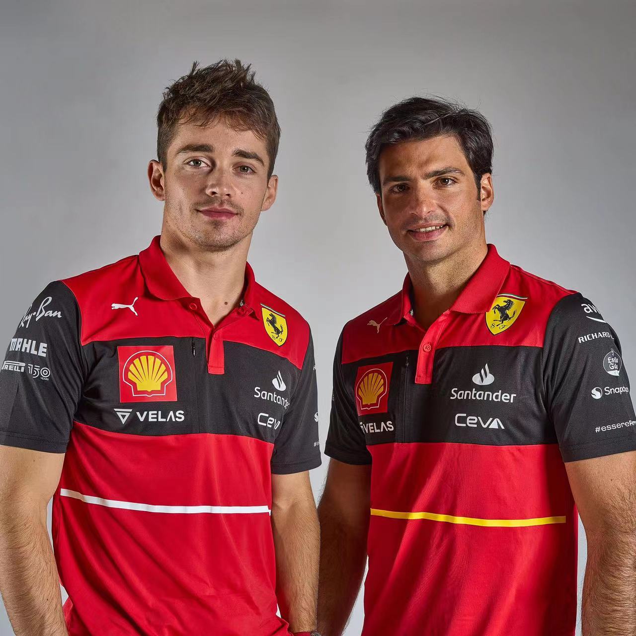 法拉利通过官方Twitter更新了勒克莱尔和塞恩斯的合影,所有新赞助商也都出现在了新队服上。