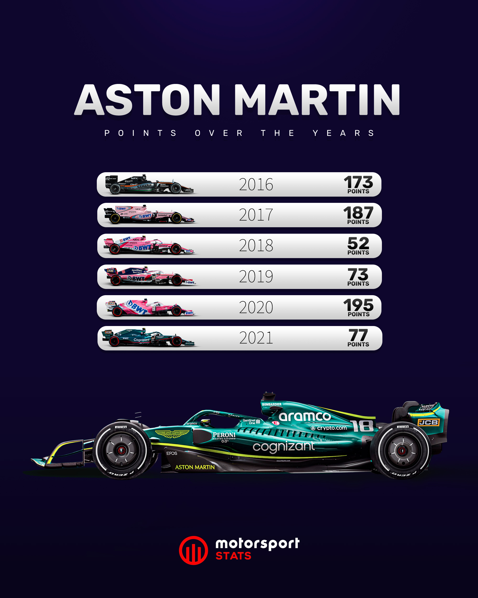 过去六年阿斯顿马丁车队积分如下: