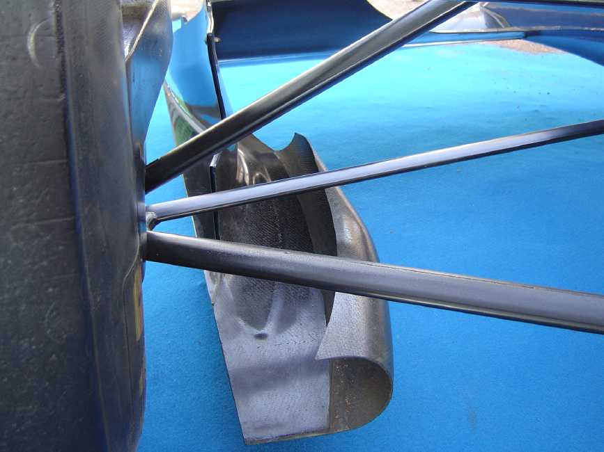 1. 在前悬挂下方使用一个小的叶片设计,在规则允许的情况下使其尽可能靠近前轮内侧面
