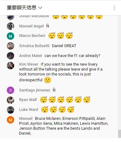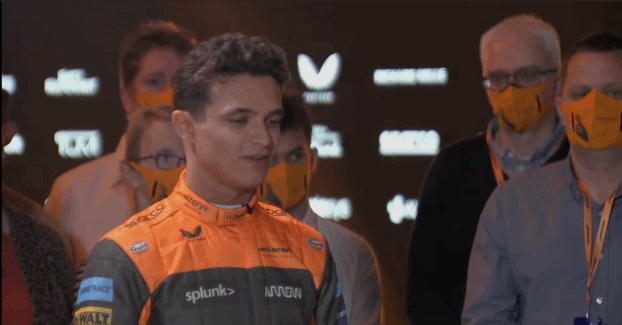 但在发布会开始之后,主持人首先采访了迈凯伦的Extreme E、Indycar和电竞项目。直到凌晨3:31分才引出迈凯伦F1车队的两位车手:里卡多和诺里斯。