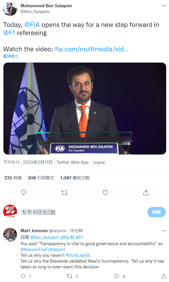 FIA主席宣布马西下课,在他的推特下车迷们纷纷质问:为什么花了2个月才做出决定?