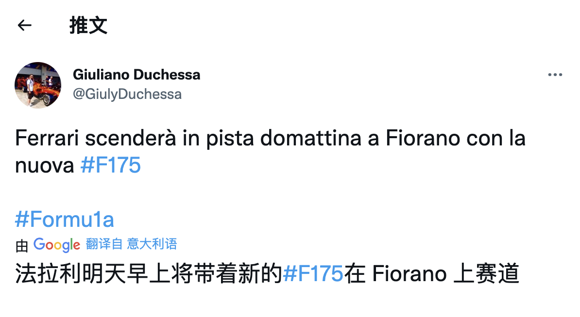 据F1记者消息,法拉利2022年的新车F1-75将在明日正式驶上赛道。