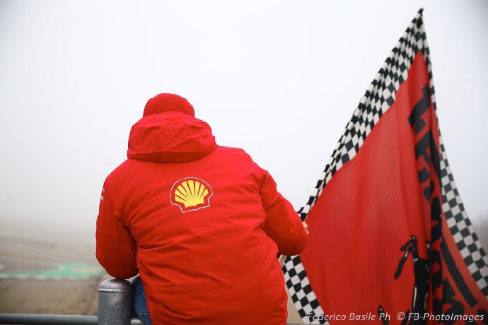 场边非常多法拉利车迷在观看车队的第一次正式亮相。